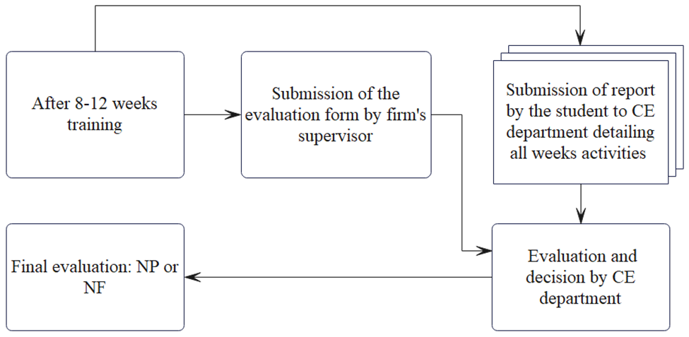 A continuous period of an eight- to twelve-week professional training course in Civil Engineering is spent in a selected work place relating to the field of study. This field internship is intended to provide students with an opportunity to use the knowledge and skills learned in college in an actual work setting. It is intended to be both practical and educational and should include teamwork activities. A final report and training evaluation form will be required at the conclusion of the internship.