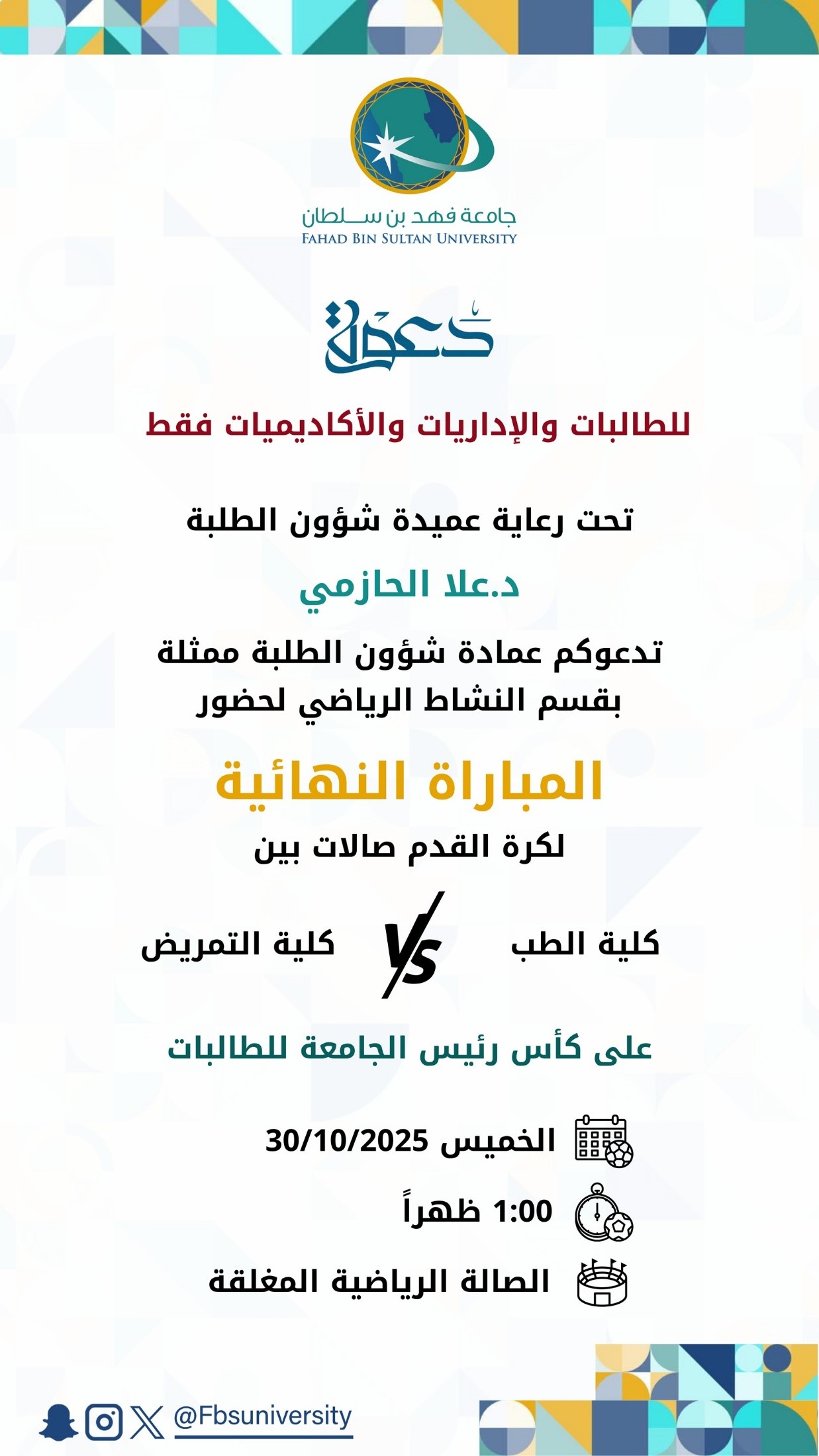 "Invitation to attend the final futsal match between the College of Medicine Team and the College of Nursing Team