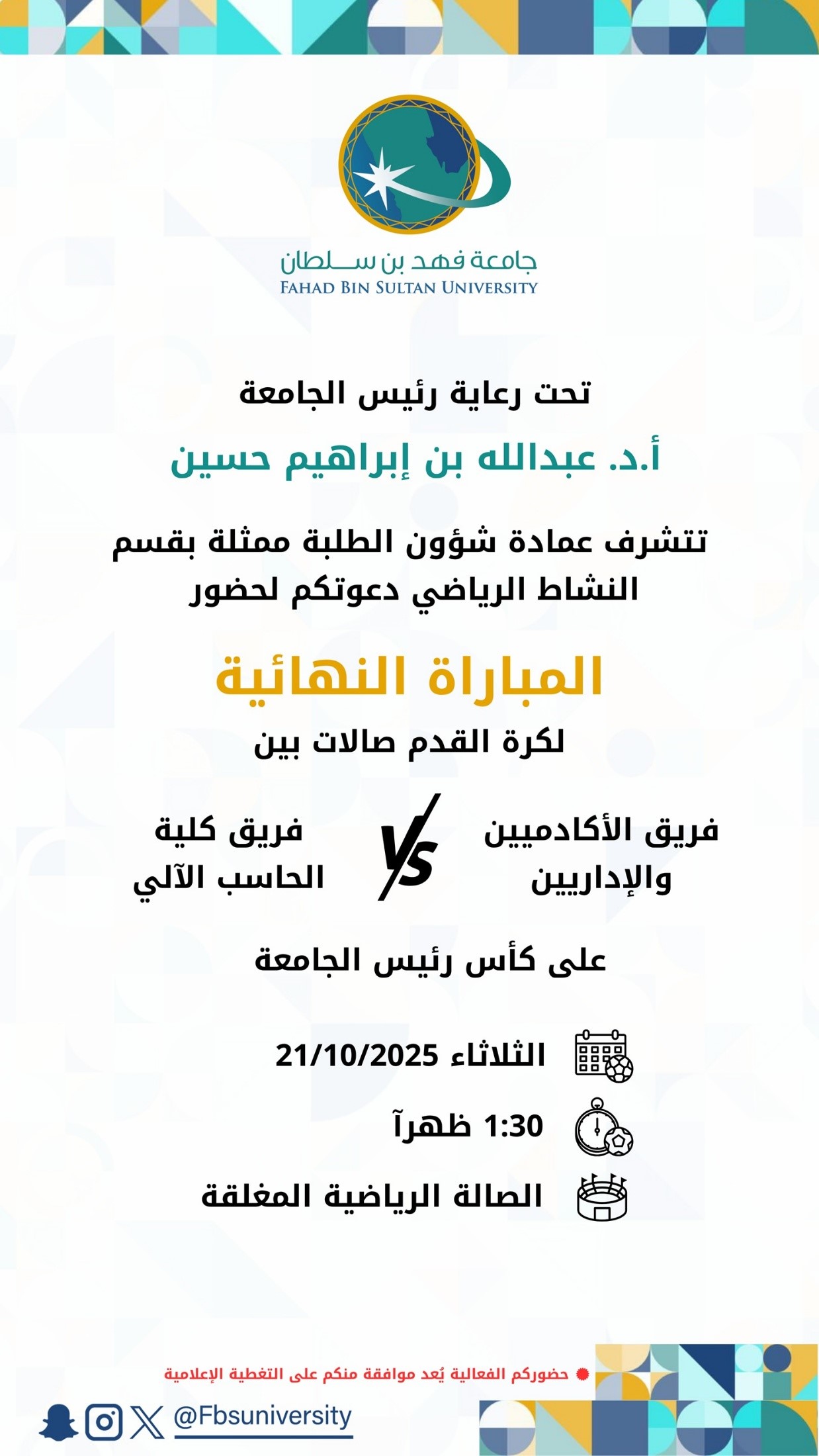 The final football match was held between the College of Computer Science and the College of Science and Humanities (Department of Law).